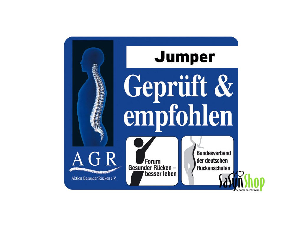 Jumper® je multifunkční tréninkový nástroj vyrobený v Německu (Evropský patent 2092964). Balanční plocha a trampolína pro fitness, osobní trénink, sportovní specializovaný trénink a fyzioterapii. Ke cvičení lze použít obě strany. Typ Mini je menší, lehčí a s nižší nosností. Spodní panel je vyztužený skelným vláknem. Povrch je protiskluzový, stejně jako spodní deska. Konkávní základní deska poskytuje brilantní vliv na trampolínu a také zajišťuje bezproblémové stohování. Schválená Dynair technologie (2/3 koule) zaručuje extrémně dynamický odrazový efekt. Lepší stabilitu kloubů a kotníků. Lepší přilnavost materiálu zajišťuje, že výrobek neproklouzne ani na lesklém povrchu.