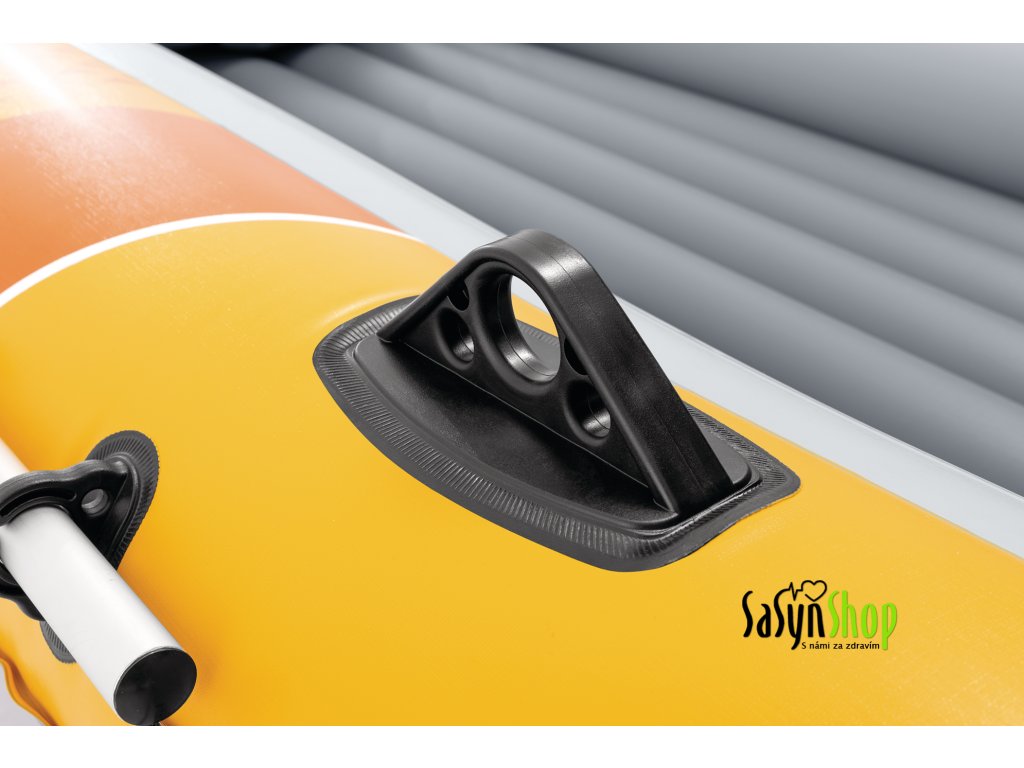 Díky nafukovacímu člunu Challenger™ 3 si užijete zábavné léto na vodě. Člun se skládá ze tří vzduchových komor, včetně pomocné komory uvnitř hlavního trupu pro zvýšení bezpečnosti. Je vyroben z vylepšeného robustního PVC materiálu, vysoce odolného proti poškození. Nafukovací podlaha s I-nosníkem je navržena pro větší pevnost a pohodlí. Pomocí dvou bostonských ventilů lze člun rychle nafouknout a vyfouknout. Pro snadnou manipulaci s člunem je po celém obvodu upevněno lano a na přídi je svařené pevné madlo. Po stranách jsou připevněné zámky vesel i držáky na vesla. Na člun lze připevnit motor díky přípojkám na zádi. Dva pohodlné nafukovací sedáky vám zpříjemní každou jízdu. Součástí sady je i pumpa a dvě hliníková vesla. Tento model je navržen pro maximálně tři osoby. Ať už jde o relaxaci nebo veslování na jezeře, tato loď je ideální pro vaše dobrodružství.