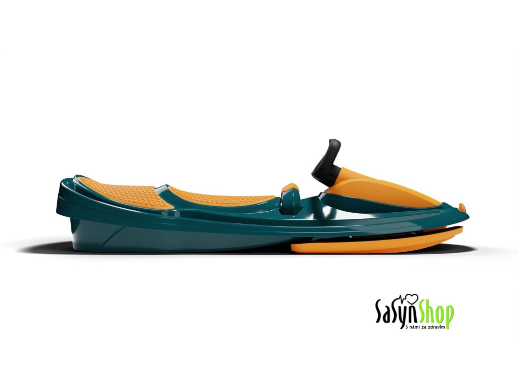 - Protiskluzové měkčené sedátko pro pohodlnou jízdu a zároveň izolaci proti chladu