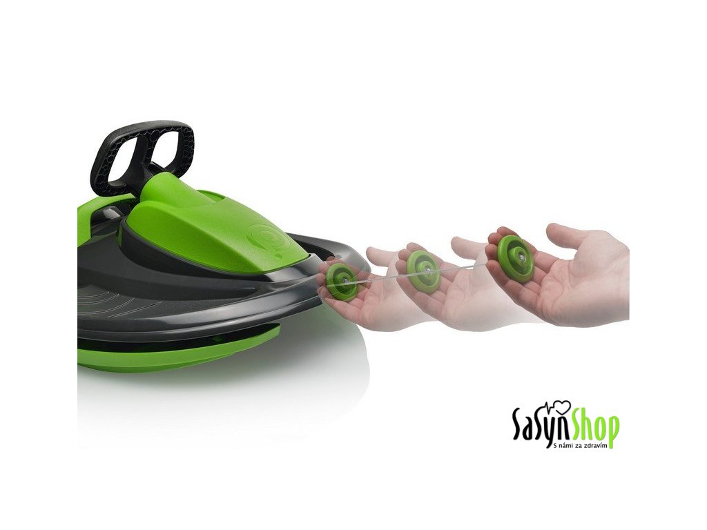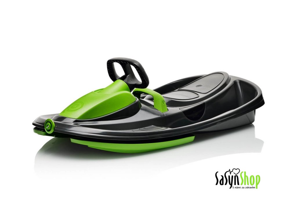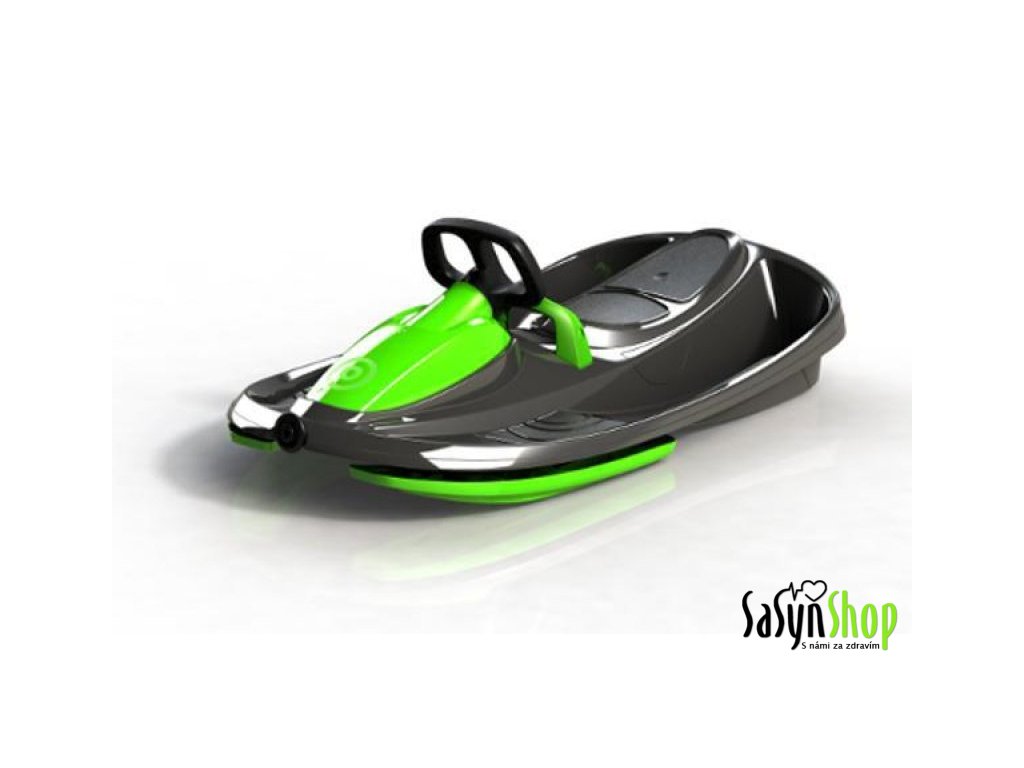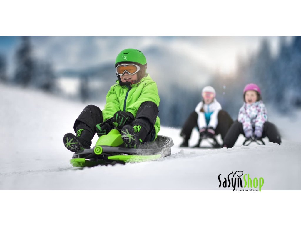 Stylový design závodní formule. Středová brzda pro větší bezpečí. Originální provedení se čtyřmi lyžinami. Zaručuje snadné zatáčení. Zatáčení pomocí diferenciálu zvyšuje rychlost v zatáčkách, protože každá lyže může zatočit pod jiným úhlem. Samonavíjecí mechanismus tažného lana. Masivní brzda s pružinou pro navrácení do původní polohy. Žádné kovové prvky ani šrouby, nemusíze mít obavu z koroze a montáž není nutná.