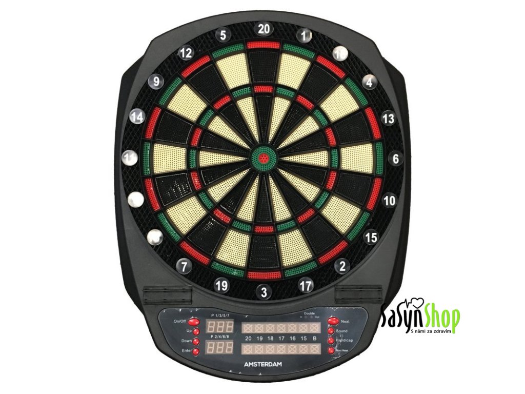 Šikovný elektronický terč v atraktivním designu. Díky 31 vestavěným hrám a více než 285 variantám si mohou vybrat začátečníci i pokročilejší hráči. Součastně může hrát 1-8 hráčů, výchozí počet hráčů je 2. Terč je navržen na napájení 3 x 1,5 V AA (LR6) baterií (není součástí). Pro úsporu baterií je tento terč vybaven režimem automatického vypnutí. Pokud terč nepoužíváte, přejde za 30 minut do režimu spánku.