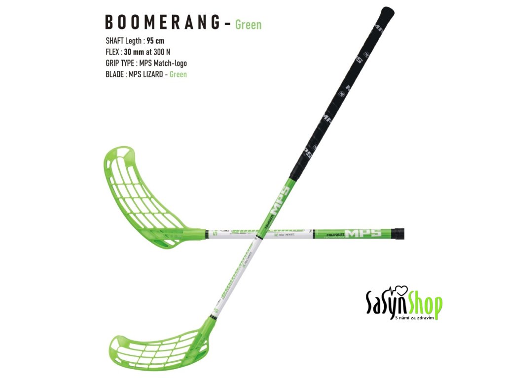 Florbalová hokejka MPS BOOMERANG Green je vhodná pro začátečníky, školy, školní kluby i centra volného času. Shaft je vyroben moderní technologií ze sklolaminátových X vláken, která zajišťují pevnost, pružnost a nízkou hmotnost pro snadné ovládání hokejky.