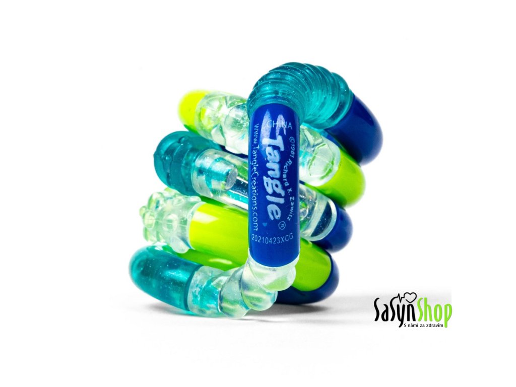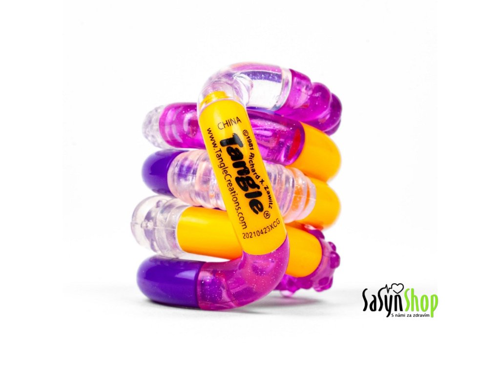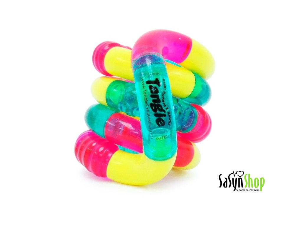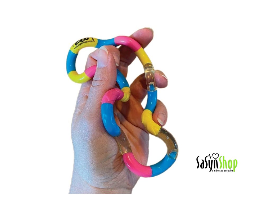 Díky různým texturám stimuluje hmatové vnímání a pomáhá zklidnit neklidné ruce i mysl. Jednotlivé články jsou otočné a pohyblivé, což podporuje přirozenou potřebu manipulace. Aktivní práce s Tanglem navíc podporuje propojení obou mozkových hemisfér a rozvoj soustředění, zejména u menších dětí.