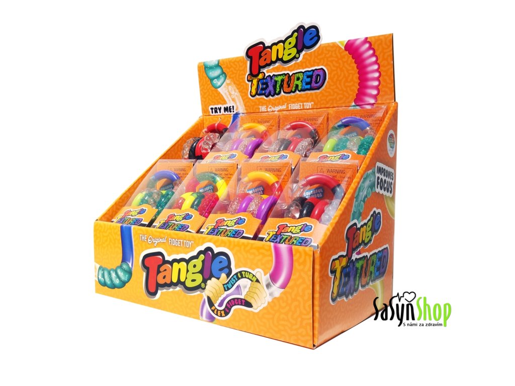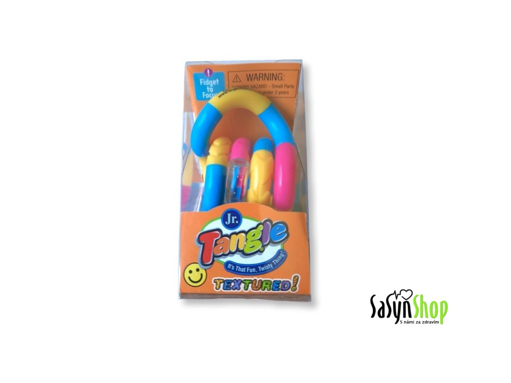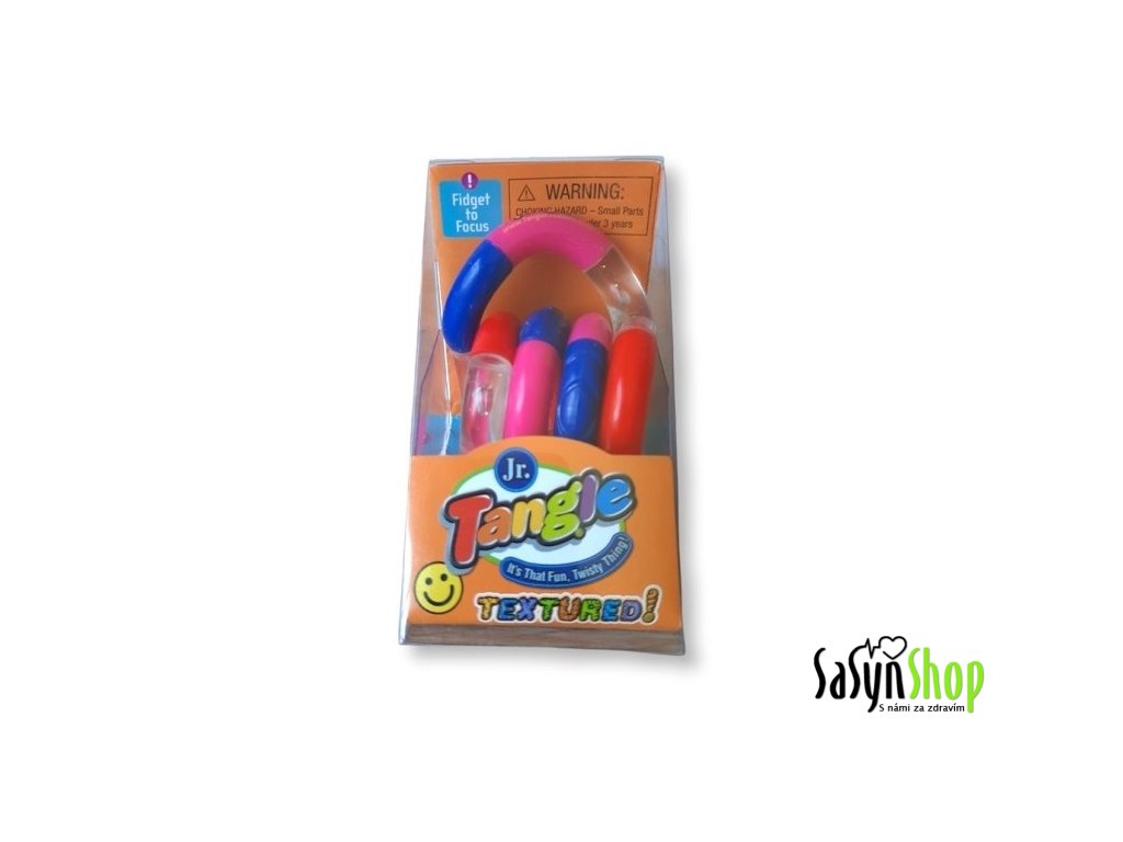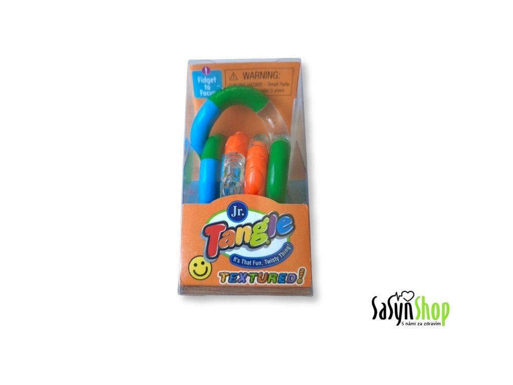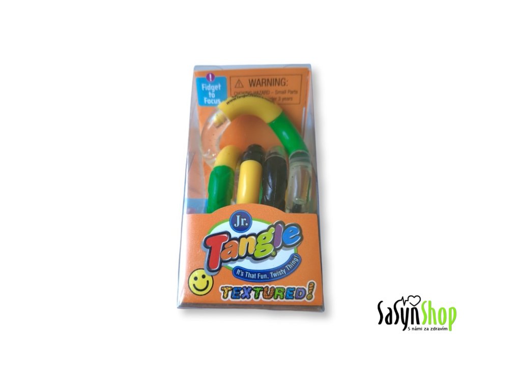 Tangle® Jr. Textured je barevná a smyslově podnětná pomůcka s hrbolatým a drsnějším povrchem, která je zábavná na dotek i prozkoumávání prsty. Děti si s ní rády hrají, točí ji a ohýbají – přitom nenápadně rozvíjejí jemnou motoriku, koncentraci a uvolňují napětí.