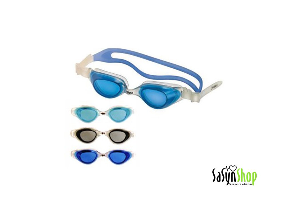 Tréninkové seniorské plavecké brýle - těsnění gumové soft - pásek zdvojený - očnice nárazuvzdorné, úprava proti mlžení AntiFog, UV filtr - hydrodynamický tvar.