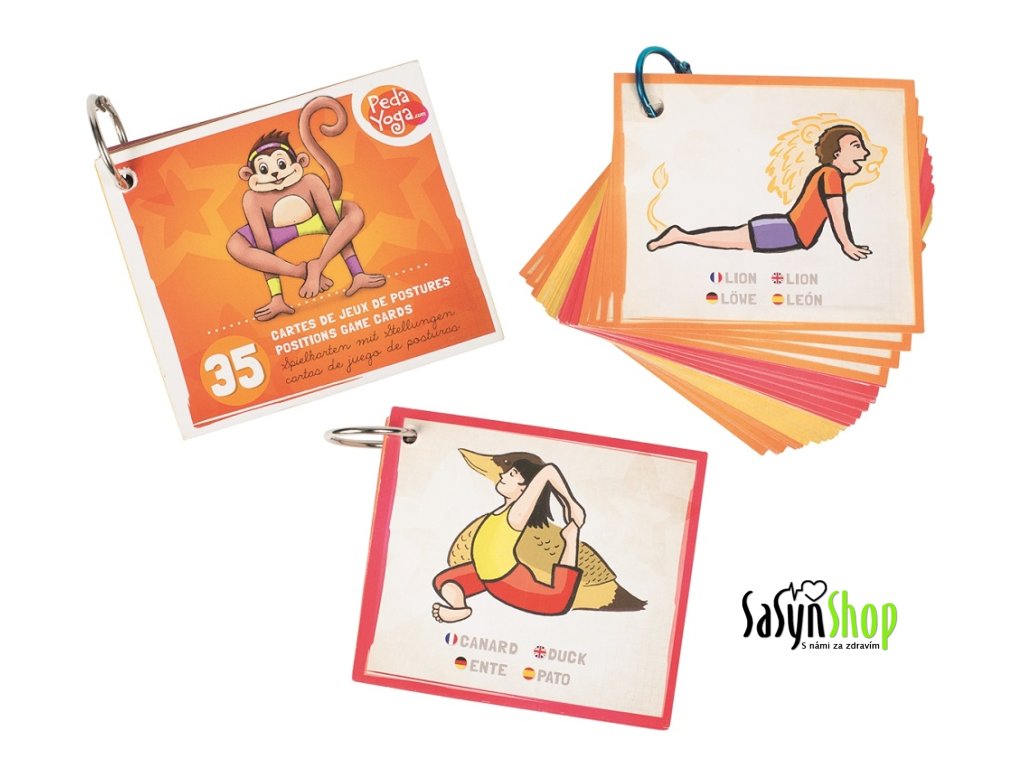 Sada PedaYoga karet „Pozice a Emoce“ obsahuje 36 karet s jógovými pozicemi, z nichž každá zobrazuje jednu specifickou pozici a její název. Názvy jsou uvedeny ve čtyřech jazycích – německy, anglicky, francouzsky a španělsky - což je skvělý způsob, jak u dětí hravě rozvíjet základní jazykové dovednosti.