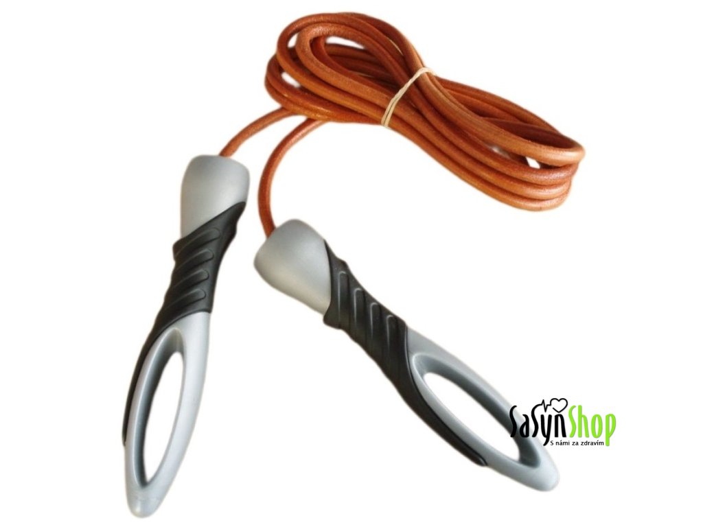 Rukovítka švihadla jsou ergonomicky tvarovaná a lano švihadla je vyrobeno z kůže.