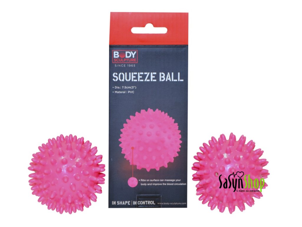 Masážní míč Squeeze ball je měkký, dobře uchopitelný a na omak velmi příjemný míč. Akupresurní míček má po celém povrchu krátké oblé výstupky vhodné k reflexní masáži rukou, plosky nohou a celého těla. Masážní ježci se používaji při rehabilitačním cvičení po úrazech, při boji s celulitidou, pro zmírnění pocitu stresu, pro zlepšení činnosti srdečního rytmu nebo uvolnění svalového napětí po sportovním výkonu. Cvičení rozvíjí citlivost a stimuluje krevní oběh.