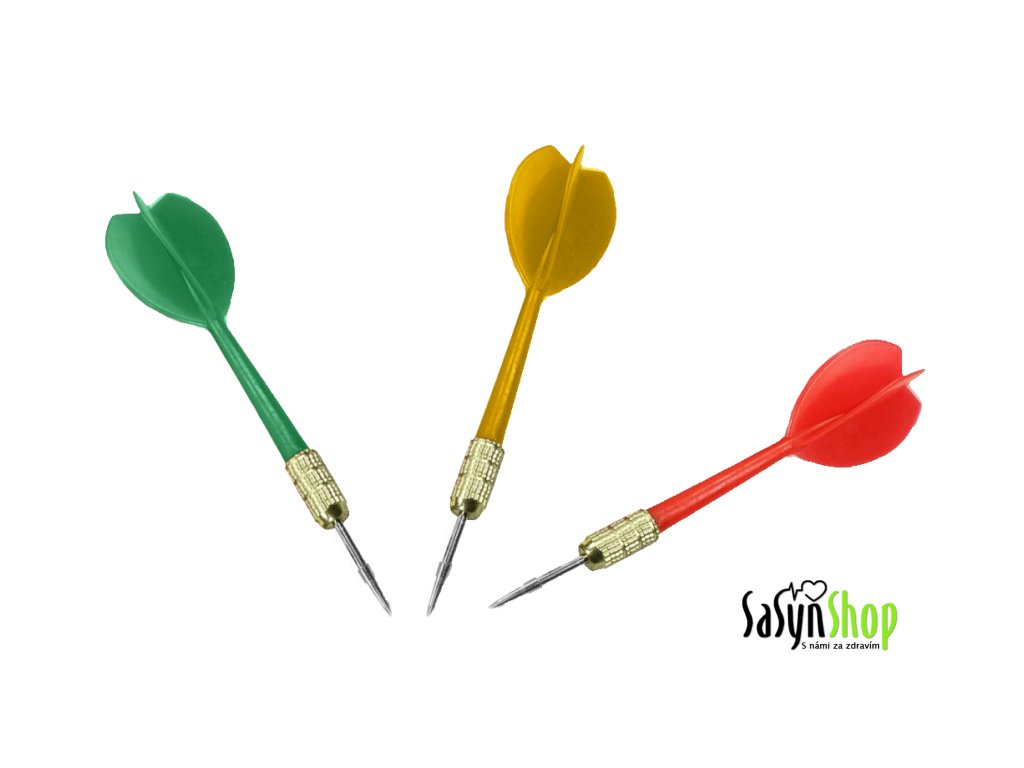 Šipky mají ocelový hrot, který je vhodný pro klasické sisalové nebo korkové terče. Díky hmotnosti 8 g se snadno ovládají a jsou ideální pro začátečníky i příležitostné hráče. Sada obsahuje 3 ks šipek v atraktivní barevné kombinaci – zelená, červená a žlutá.
