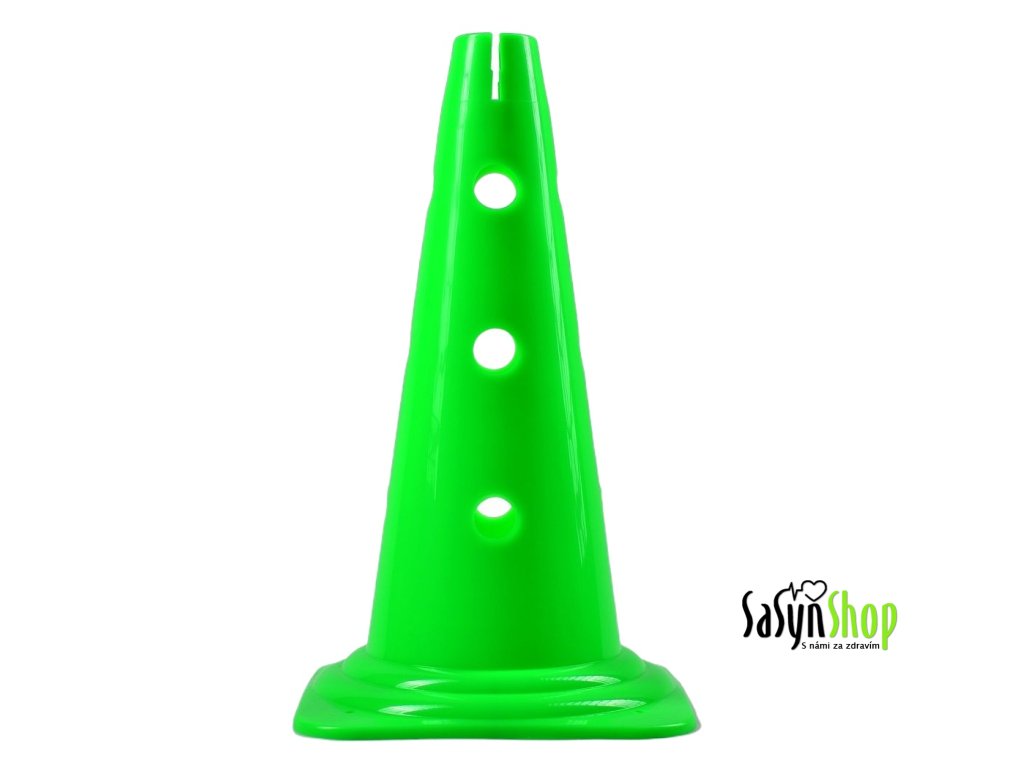 Kvalitní pevný sportovní děrovaný vytyčovací plastový kužel ve více barevných provedeních. Používá se jako pomůcka pro vyznačení dráhy, hrací plochy, k vymezení prostoru, branky apod. Záleží pouze na Vás jakou si vytvoříte sestavu pro koordinační cvičení, pro různé didaktické hry nebo slalomovou dráhu pro Agility.