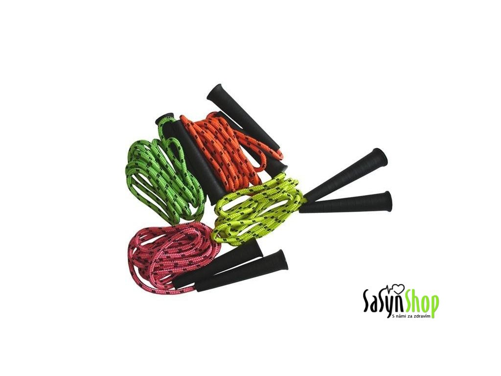 Je klasické duhové švihadlo o délce 2m s plastovými držadly. Mix barev.