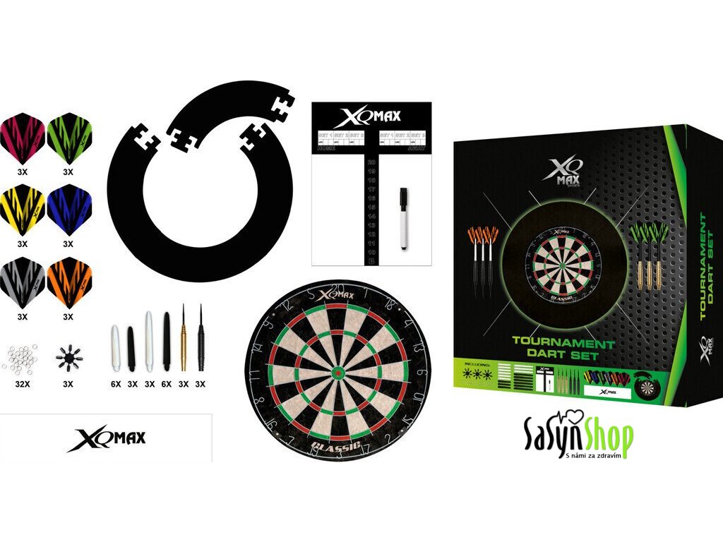 Kompletní turnajová sada XQ MAX - šipky + terč + příslušenství