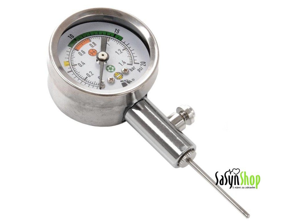Měřič tlaku míčů kovový budík HS001: měřič tlaku v míčích , kovové tělo, stupnice bar- 0,-1,4bar, psi 0-20psi, včetně grafického znázornění